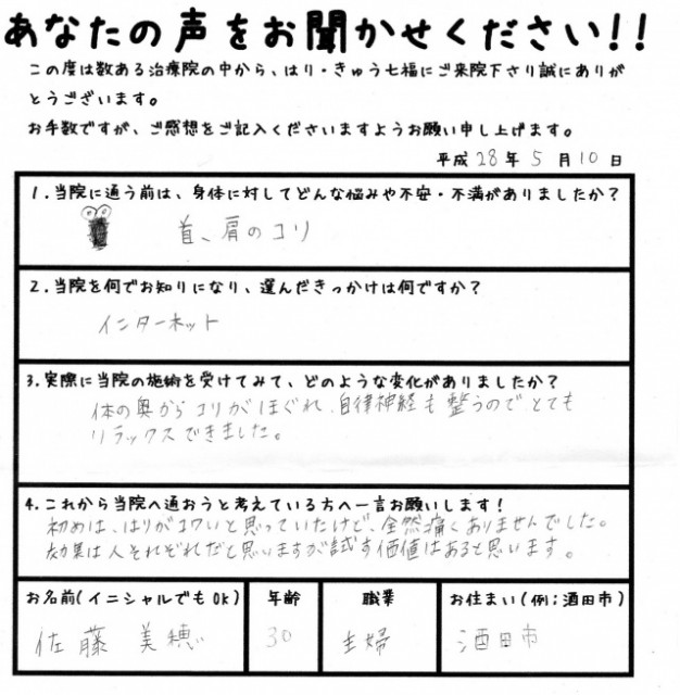 施術を受けられた方々にはこんな感想をいただいています。