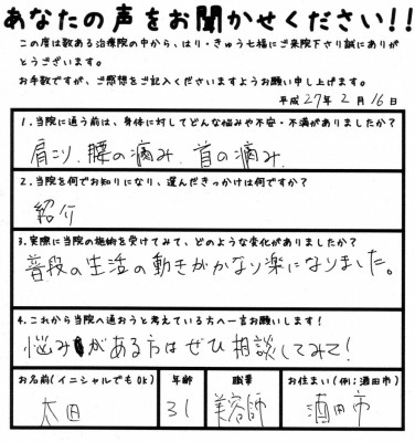酒田市 太田様 31歳(職業:美容師)