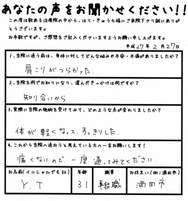 体が軽くなってすっきり、一度通ってみてください