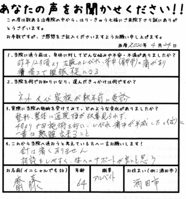 酒田市 齋藤様 64歳(職業:アルバイト)