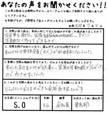 辛かった足のむくみが改善し、足首の可動域が広がったので歩きやすくなった