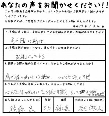 酒田市 後藤様 33歳(職業:会社員)